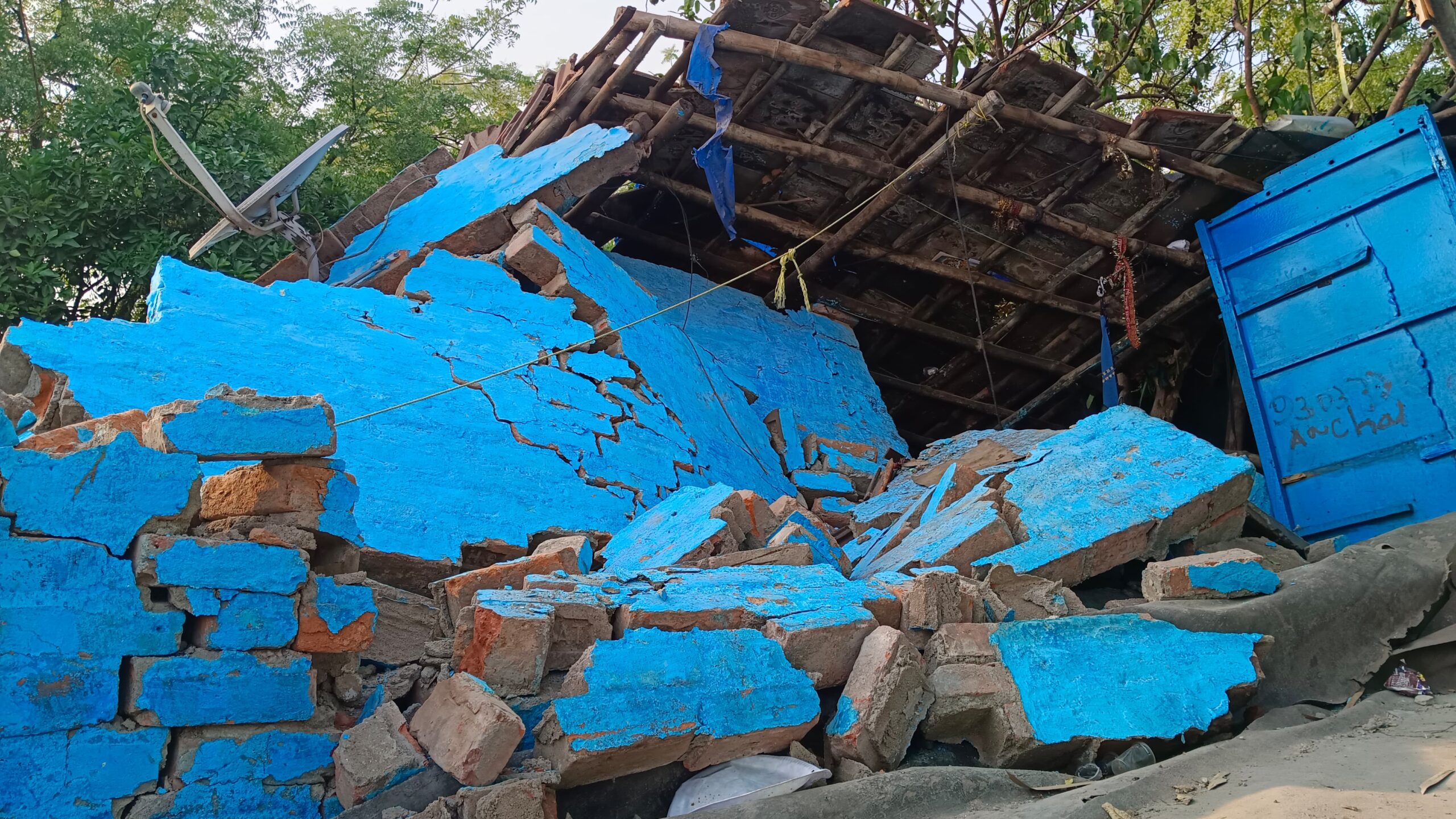 বেলগাছিয়ার ভাগাড়ে বার বার ধসের জেরে বহু বাড়িতে ফাটল ধরেছে। রবিবারই সংবাদমাধ্যম ও পুলিশের চোখের সামনে একটি বাড়ি আচমকা হুড়মুড়িয়ে ভেঙে পড়ে। এই পরিস্থিতিতে সোমবার এলাকায় মাইকিং করেন সিভিল ডিফেন্সের কর্মীরা। বাসিন্দাদের বিপজ্জনক এলাকা থেকে সরে গিয়ে নিরাপদ আশ্রয়ে থাকার জন্য আবেদন করেন তাঁরা। এতেই ক্ষোভে ফেটে পড়েন স্থানীয়েরা। তাঁদের অভিযোগ, তাঁদের বাস্তুচ্যুত করার পরিকল্পনা হচ্ছে। নিজের জায়গা ছেড়ে তাঁরা কোথাও যাবেন না।